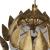 This hammered chandelier of vintage brass is both bold and Brutalist in form. Two layers of Lotus petals suspended from a sturdy support encircle a frosted acrylic diffuser, allowing just the right amount of light to peek through for illumination. A vintage brass floral finial provides an extra detail on the centered pipe. Damp-rated, although limited covered outdoor conditions may affect finish. Finish will vary.