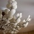The lush allure of tropical foliage informs the Bilal. From afar, this botanically inspired fixture resembles metal but is cleverly constructed of coconut shells. Updated in a neutral ivory hue, it is a stylish companion to our Bilal chandelier. Suspended from an antique brass iron canopy. Finish will vary.