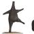 Abstract animals frolic atop bases of antique brass steel mounted on clear crystal cubes. Skillfully carved of black riverstone, this modernist duo adds a touch of whimsy to any space. Finish will vary.