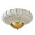 Formed in a soothing sunburst motif, a circle of ivory ricestone composite cradles an antique brass steel flush mount. Designed to allow the center light to gently wash over the curved surface, it is finished with a stylish spherical screw cap. Finish will vary.