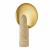 The luminous shimmer of antique brass creates a halo effect behind a rounded base of sand faux travertine. Its rounded intersection is soothing yet captivating, while the natural voids, veining, and color variants in the stone make this lamp a statement piece. Finish will vary.