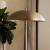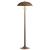 This floor lamp's trumpet base and gong shape update a Space Age silhouette. This reinvented form of vintage brass-plated aluminum possesses a subtle iridescence. A vintage brass-plated iron dome shade delivers instant mood-setting illumination. Double pull chains and matching finial.