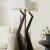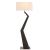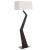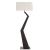 A dynamic accent piece, the Graceland's angular silhouette recalls a lightning bolt. The zig-zag form of ebony resin is finished in a faux bois-inspired texture, accented by a bronze-plated steel base and matching hardware. Topped with a rectangular off-white linen shade lined in white cotton.