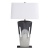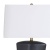 The angular form of our porcelain style offers an intriguing mix of positive and negative space, with a cross-hatched texture that emphasizes its craft. Cutout slots provide added interest, while the shoreline reactive glaze offers a gradient finish that shifts from deepest black to pure ivory. Finished with bronze steel base, an off-white microfiber rectangular drum shade lined in off-white cotton and an antique brass sphere finial. Finish will vary.