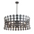 The rhythmic repetition of circles adds pleasing symmetry to a fixture of burnt iron. Hung from a matching iron pipe, the hourglass shape is enhanced with hand-torched details that add a subtle gradation effect. Damp-rated, although limited covered outdoor conditions may affect finish. Finish will vary.