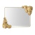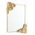 A rectangular mirror of beveled glass is held by brass brackets informed by the organic shapes of Art Nouveau. Inspired by lily pads, each hand forged antique brass floral overlay varies in size for a feeling of movement. Designed to be displayed horizontally or vertically by a back cleat. Hanging hardware included. Finish will vary.