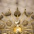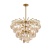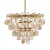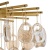 Round amber seedy glass drops are suspended in a cascading wind chime-inspired silhouette from an armature of antique brass-plated steel. Inspired by a handbag, each glass shape is supported by a delicate, yet sturdy chain threaded through its "handle," allowing the drops to refract the light for a dazzling effect. Damp-rated, although limited, covered outdoor conditions may affect finish. Finish will vary.