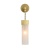 An elegant twist on the traditional pendant, this antique brass-plated steel sconce features a chain drop that suspends a frosted glass shade. Accented with chattered brass details that mirror the glass's ribbed texture, this free-hanging style is even more dynamic when displayed in multiples. Damp-rated, although limited, covered outdoor conditions may affect finish.
