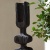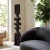 Designed to draw the eye, this monolithic sculpture of ebony resin makes a dynamic accent for any corner. The totemic-inspired shape resembles a fishbone, with a grooved texture that recalls sea-worn driftwood. Mounted on a circular bronze steel base.