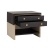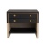 A modern mix of materials elevates our sophisticated side table. The smoke oak wood waterfall case is juxtaposed with luxe black embossed leather on the top and front, with stitched details to highlight the black shagreen. Punctuated by antique brass inlay and delicate pulls, this handsome piece features two soft-close drawers and an open shelf for essentials. Finish will vary.
