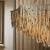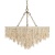 Like a fringed skirt, strands of natural mother-of-pearl shell, white wooden beads and ivory coconut shell give the feeling of movement to our scalloped fixture. Suspended on an umbrella framework, this exotic style's mix of materials assures an added glimmer when illuminated. Hung from chains of antique brass-plated iron, it can also be displayed as a semi-flush fixture. Finish will vary.