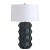 Shaped and glazed to create playful movement, our ceramic Journey is a modern update of a hand-thrown lamp from the mid-century. The zig-zag form is glazed in ocean reactive for subtle gradation and accented with antique brass hardware. Topped with a white linen drum shade and matching ceramic finial. Finish will vary.