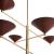 The kinetic charm of mid-century design is reflected in our McVey. Inspired by modern art mobiles, it was made to be equally impactful when hung from low or high ceilings. Cantilevered rods of steel finished in antiqued brass are offset by upward-facing conical shades lacquered in paprika, while pure white interiors reflect light to create a warm, even glow. Damp-rated, although limited covered outdoor conditions may affect finish.