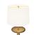 Inspired by the Putney lamp, we created a large-scale version. From each direction, its silhouette reveals three stacked rounded forms—a cylinder, a disc, and an elongated tapered coin base. Showcasing angular composition and balance, it has a mid-century feel with an updated take on the style via its cast aluminum in an antique brass finish. Topped with an off-white linen shade with off-white cotton lining. Clear silver cord and three-way rotary switch.