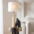 A twist on our classic table lamp, our conical style is crafted of natural travertine stone. Bronze steel hardware and double bronze on/off pull chains juxtapose the organic material of the base. Topped with a bronze sphere finial and an off-white microfiber drum shade lined with off-white cotton. Finish will vary.