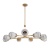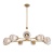 This new take on our Smyth's Chandelier form updates its linear and angular silhouette into a fresh, rounded shape to divert light throughout space. The smoke luster glass globes feature fluted details, which add to the vintage-inspired look. Its antique brass-plated steel structure is suspended from aircraft wire, and the branching look is centered with a triangular form for eye-catching impact. Damp-rated, although limited, covered outdoor conditions may affect finish.
