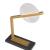 Influenced by the playful shapes and angles inspired by the Memphis movement, the sculptural Zahar adds an artistic accent to any decor. Suspended by supports of polished antique brass, an Onyx LED disc defies gravity to diffuse light across any surface. Secured with a bronze base and black cloth cord with on/off rocker switch.