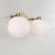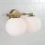 Circular forms meet all-around versatility in the Ansley 2-Light Vanity for HomePlace. The Soft White glass globe shades illuminate sophisticated style, while the Aged Brass finish creates a mid-century aesthetic.