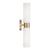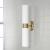 Sleek and classic, the Theo Dual Sconce for HomePlace punctuates any powder room. The Aged Brass finish adds a warm shine, while the elongated Soft White glass shades create a sophisticated glow.
