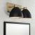 Invite charming style to any powder room with the Ross 2-Light Vanity. The curved Black metal shades with White interior create a retro aesthetic, while the Aged Brass details give a nod to mid-century style.