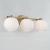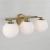 Circular forms meet all-around versatility in the Ansley 3-Light Vanity for HomePlace. The Soft White glass globe shades illuminate sophisticated style, while the Aged Brass finish creates a mid-century aesthetic.