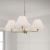 Transitional style meets modern details in the Parson 4-Light Chandelier. The tailored fabric shades and glass diffusers evoke a sophisticated aesthetic alongside the sleek, angular lines and Matte Brass finish.