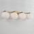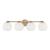 Circular forms meet all-around versatility in the Ansley 4-Light Vanity for HomePlace. The Soft White glass globe shades illuminate sophisticated style, while the Aged Brass finish creates a mid-century aesthetic.