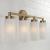 Sleek forms and modern contours create the Alyssa 4-Light Vanity. The Aged Brass finish adds warmth to the earthy, elegant Faux Alabaster glass shades, while the elongated lines deliver sophisticated style. Hang socket facing up or down to seamlessly suit any space.