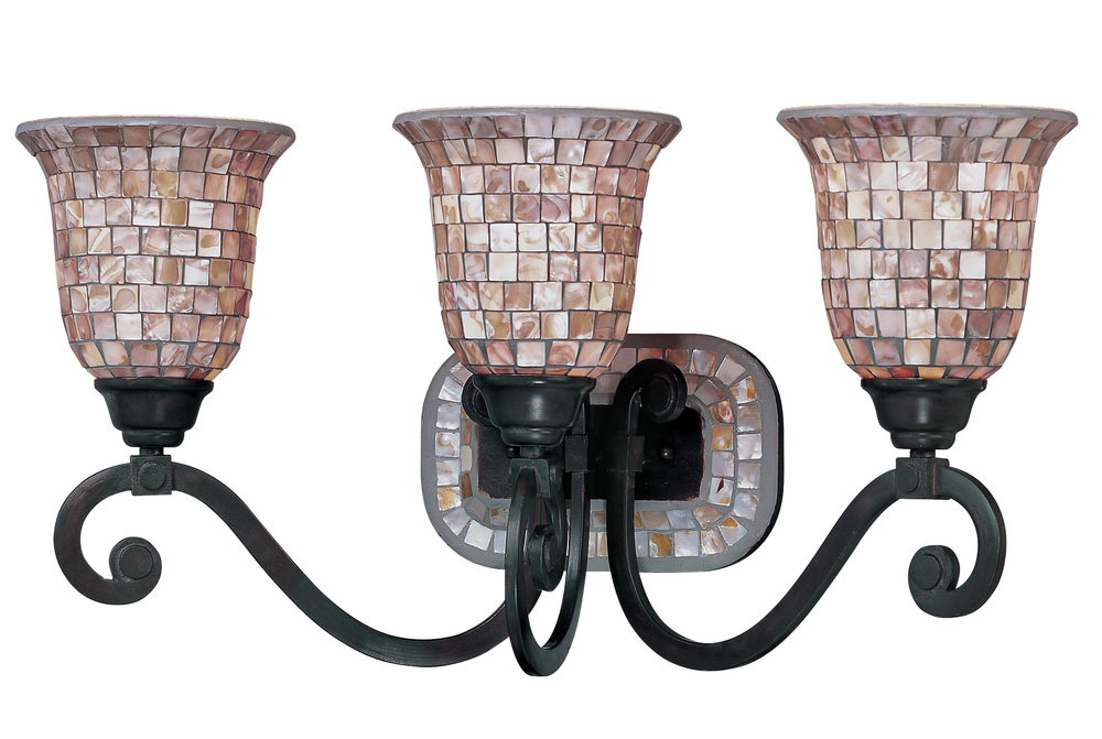 24"Wide x 12"High x 9"Deep Finish Shown: Oil Rubbed Bronze Crystal Shown: n/a A beautiful mosaic of translucent shells creates a wonderful lighting effect. Every piece is unique.