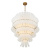 The Abigail Collection features tiered, curved panels of thick, hand-applied art glass arranged in a sculptural silhouette. Each textured glass piece is mounted to a structured metal frame and carefully shaped to diffuse light while adding depth and dimension. Whether illuminated or not, it serves as an artistic focal point—its layered form and artisanal materials creating visual impact from every angle. With handcrafted detailing and a bold, statement-making profile, the collection suits both contemporary and transitional interiors.