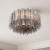 The captivating Addis Lighting Collection is a modern-day interpretation of the iconic mid-century Tronchi chandelier. Inspired by its predecessor's sleek lines and geometric shapes, the Addis features a polished Chrome or Aged Brass metal frame that exudes sophistication and style. Its unique design showcases transparent tiers of textured Tronchi glass tubes, forming a mesmerizing 5-point rounded star shape. Choose from a range of glass colors, including clear, amber, smoke, and white, or the stunning Autumn option, which features a captivating multicolor disposition of amber, clear, and smoke Tronchi glass. The Addis Lighting Collection offers various sizes and finishes, allowing you to find the perfect fit for your space while adding a touch of timeless elegance.