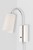 The Alexa wall sconce is defined by its simple yet stylish design. Its rectangular backplate features a sweeping slender arm and tapered white glass shade. This ideal lighting design is perfect for a bedside or reading nook and is available in three finishes.