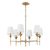 The Broche 6 Light Chandelier embodies a harmonious blend of traditional and modern elements. This fixture exudes timeless elegance with its candelabra-style frame and white linen shades. The layered wrought iron leaves create a stunning and functional display of light. Whether in a bedroom, living area, or kitchen, this chandelier adds a touch of refined glamour to any space, making it perfect for transitional and modern designs.