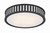 The contemporary Kendal collection makes a statement with its graphic uniform pattern. Its metal frame surrounds white glass in this elegant drum-shaped ceiling mount. The high contrast of Vibrant Gold, Black Forged, or Polished Nickel against white glass is a great way to add a touch of drama to a room.