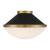 The Xander collection features a playful, mid-century-inspired design with clean lines and fun pops of color. It has white opal glass and gold accents, creating a two-toned finish that adds a touch of whimsy. This versatile fixture can be used in various settings, making it a stylish and functional addition to any room.