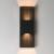 An array of precise slits are stacked in two columns on rectangular shade forms of various sizes. Housed in a blocked out space is a recessed LED light source that casts a filigree that radiate onto the surface surrounding the sconce making a dazzling disp