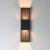 An array of precise slits are stacked in two columns on rectangular shade forms of various sizes. Housed in a blocked out space is a recessed LED light source that casts a filigree that radiate onto the surface surrounding the sconce making a dazzling disp