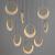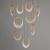 Named for the Greek constellation associated with music and harmony, Lyra strikes a poetic balance between sculpture and light. Crescent-shaped cast glass, swirled in clear and white, is cradled in golden rings and suspended by slender black cables to evok