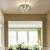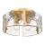 Bring nature-inspired elegance into your home with the Golden Lighting Aenon 3-light Flush Mount. Featuring a glass shade and a brushed champagne brass frame, it creates a welcoming atmosphere. The glass shade showcases a hammered water glass design, featuring a heavy, irregular texture crafted to create beautifully distorted and refractive light effects, capturing the dynamic essence of ice and water. The brushed champagne brass finish offers an understated elegance, blending warmth with a soft sheen that beautifully catches light. Ideal for low ceilings in hallways, closets, laundry areas, and bathrooms, this fixture is damp location rated for covered and semi-enclosed spaces with occasional moisture. It requires 3 E26 medium base bulbs (not included), with a maximum wattage of 60 per bulb. Overall Dimensions: 15"W x 6.88"H x 15"D. Elevate your space with the quality craftsmanship and artistic details of this stunning flush mount light.
