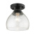 Introduce a touch of elegance into your home with the Golden Lighting Ariella 1-light Semi-Flush Mount in Matte Black. Featuring a glass shade and a sleek Matte Black frame, this fixture creates a warm and inviting atmosphere. The glass shade showcases a Hammered Clear Glass design, creating a visually stunning effect while casting dynamic light that harmonizes with your space. With a timeless Matte Black finish, this semi-flush mount offers an elegant, smooth surface that enhances a wide array of decor styles, from industrial to contemporary. Ideal for entryways, living areas, and bedrooms, this fixture is Damp Location Rated for use in covered and semi-enclosed spaces with occasional moisture. It’s designed for mid-height ceilings, providing both style and practicality. Overall Dimensions: 7.38"W x 7.75"H x 7.38"D. Requires 1 E26 Medium base bulb (not included), with a maximum wattage of 100. Elevate your interior with this quality fixture that brings character and charm to any room.