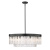 Bring glam elegance into your home with the Golden Lighting Ciara 9-light Chandelier. Featuring a glass shade and a Matte Black frame, it creates a welcoming atmosphere. The glass shade features a Hammered Water Glass, which boasts a heavy, irregular texture designed to create a beautifully distorted and refractive light effect. This artisanal choice captures the essence of both ice and water, offering a dazzling glow that animates any space. The Matte Black finish is the epitome of modern design, with its deep, non-reflective surface that complements various decors, from minimalist to contemporary. Perfect for dining rooms and foyers, this chandelier is Damp Location Rated, making it suitable for covered or semi-enclosed spaces. The Convertible Design allows for easy installation as either a semi-flush mount or pendant, with an Adjustable Height from 10.125" to 55". Overall Dimensions: 27"W x 10.13"H x 27"D. Requires 9 E12 Candelabra base bulbs (not included) with a maximum wattage of 60 per bulb. Make a dramatic statement with a fixture that's as engaging as it is elegant, crafted with artistry and quality.