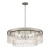 Bring glam elegance into your home with the Golden Lighting Ciara 9-light Chandelier. Featuring a glass shade and a Peruvian Silver frame, it creates a welcoming atmosphere. The glass shade employs a Hammered Water Glass, offering a distinct surface texture that artfully distorts and refracts light, making each moment uniquely illuminated. With elements reminiscent of frozen streams, it adds a touch of organic beauty and radiance to your setting. The Peruvian Silver finish captures a rustic elegance with its weathered tones and artisanal feel, perfect for complementing your home decor with a sophisticated touch. Ideal for dining rooms and foyers, this chandelier is Damp Location Rated, making it suitable for covered or semi-enclosed spaces. Its Convertible Design allows for flexible installation as either a semi-flush mount or pendant, with an Adjustable Height of 10.125" to 55". Overall Dimensions: 27"W x 10.13"H x 27"D. Requires 9 E12 Candelabra base bulbs (not included) with a maximum of 60 watts per bulb. Elevate your interior with a statement fixture that seamlessly blends artistry and elegance, designed to enhance your living spaces.