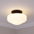 Bring traditional elegance into your home with the Golden Lighting Ingalls 1-light 12in Semi-Flush Mount. Featuring a vintage milk glass shade and a sleek matte black frame, it creates a welcoming atmosphere. The vintage milk glass shade provides a soft, luminous glow, reminiscent of classic schoolhouse designs. Its opaque finish adds a touch of nostalgia while ensuring a glare-free ambiance, perfect for evening relaxation. The matte black finish offers a sophisticated non-reflective surface that complements a wide array of decors, making it a versatile choice. Ideal for entryways, bedrooms, kitchens, and living areas, this fixture is damp location rated, suitable for covered spaces with occasional moisture. Uses 1 E26 Medium base bulb (not included). Max 100 wattage per bulb, ensuring bright illumination in any space. With overall dimensions of 12"W x 8.63"H x 12"D, this piece not only provides illumination but enhances your interiors with its quality craftsmanship and artistic flair.