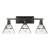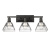 Elevate your bathroom decor with the Golden Lighting Kepler 3-light Vanity. Featuring a glass shade and a sleek matte black frame, it creates a chic and sophisticated atmosphere. The water glass shade possesses a heavy, wavy texture that refracts light beautifully, similar to shimmering water, adding a touch of elegance to your space. Our matte black finish offers timeless versatility, absorbing light to create a soft, understated elegance. Perfect for bathrooms, this fixture is rated for damp locations and provides practical task illumination. Overall Dimensions: 27.5"W x 11.25"H x 8.5"D. Requires 3 E26 Medium base bulbs (not included), with a maximum wattage of 60. Ideal for brightening up spaces while maintaining a sleek aesthetic.