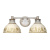 Bring elegance to your home with the Golden Lighting Kinsley 2-light Vanity. Featuring a metal shade and an aged galvanized steel frame, it creates a fresh atmosphere. The Antique Ivory finish, enriched with a creamy base and dark antiquing glaze, exudes timeless charm. This vanity light is damp location rated, ideal for covered spaces, providing dedicated illumination that flatters while enhancing functionality. It requires 2 E26 medium base bulbs (not included), max 100 wattage per bulb, and measures overall dimensions of 19.25"W x 7.88"H x 9.25"D. Each light is hand-painted, celebrating unique craftsmanship that complements both farmhouse and traditional styles.