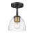Bring timeless elegance into your home with the Golden Lighting Roxie 1-light Semi-Flush Mount. Featuring a glass shade and a matte black and brushed champagne brass frame, it creates a welcoming atmosphere. The clear glass shade provides brilliant, unobstructed light that highlights the beauty of the fixture and its exquisite design, enhancing the room's appeal. With a finish that epitomizes clean, modern style, the matte black offers a smooth surface complemented by the warmth of brushed champagne brass, making it a perfect match for any decor. Ideal for entryways, bedrooms, kitchens, and living areas with mid-height ceilings, this light is damp location rated for covered spaces. You can customize your lighting with adjustable directional heads. Overall dimensions: 6.25"W x 9.75"H x 6.25"D, and it requires 1 E26 medium base bulb (not included) with a maximum wattage of 100. Elevate your home’s charm with a quality fixture that combines style with functionality seamlessly.