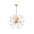 Bring glam elegance into your home with the Wry Lighting Dandelion 6-light Pendant in Matte Gold. Without any shade, this piece is designed to create a breathtaking lighting display. An explosion of crystal-like rods comes together to form a luxurious starburst effect, reflecting light from every angle to fill your space with sparkle and glamor, perfect for making a statement. The Matte Gold finish provides a warm and sophisticated glow with its soft satin lustre that diffuses light gently, avoiding harsh glares while adding refined texture. Ideal for dry conditions, this pendant is perfect for indoor spaces, including kitchens, dining rooms, and bedrooms. It is easily adjustable in height and compatible with sloped ceilings for a custom fit. Overall dimensions are 24"W x 24"H x 24"D, and it requires 6 E12 Candelabra base bulbs (not included), max 60 wattage per bulb. Add a touch of luxurious charm and an opulent statement piece to your home with this striking fixture.