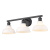 Bring a touch of nostalgic charm into your home with the Yep by Golden Lighting Carver 3-light Vanity. Featuring a vintage milk glass shade and a matte black frame, it creates a welcoming atmosphere. The vintage milk glass shade provides a soft, luminous glow that is completely glare-free, adding warmth to any space. The matte black finish is both timeless and endlessly versatile, exuding a smooth perfection that enhances contemporary and traditional decor alike. This customizable bath vanity brightens up bathrooms with dedicated lighting that flatters while providing practical task illumination. It is damp location rated, making it suitable for covered and semi-enclosed spaces like bathrooms or laundry rooms. Installation is uncomplicated and requires 3 E26 medium base bulbs (not included), with a maximum of 60 watts per bulb. Overall dimensions are 27.5"W x 8.63"H x 8.63"D. Elevate your bathroom experience with this quality fixture that combines style and functionality.