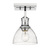 Bring timeless elegance into your home with the Yep by Golden Lighting Hines 1-light Semi-Flush Mount. This stunning fixture showcases a glass shade and a brilliant chrome frame, creating a sophisticated atmosphere. The seeded glass shade features tiny bubbles that add a touch of artisanal charm and delicately diffuses the light, enhancing the warm ambiance. The polished chrome finish offers a sleek and reflective surface that integrates seamlessly with various decor styles. Ideal for entryways, kitchens, and living areas with mid-height ceilings, this fixture is damp location rated, making it suitable for covered and semi-enclosed spaces. Installation is a breeze with adjustable directional heads to customize your lighting. Dimensions measure 6.88"W x 10.38"H x 6.88"D, and it requires 1 E26 Medium base bulb (not included) with a maximum wattage of 60. Enrich your decor with this beautiful blend of style and practicality.