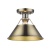 Introduce industrial elegance into your home with the Yep by Golden Lighting Orwell 1-light Flush Mount. Featuring a metal shade and an aged brass finish, it creates a welcoming atmosphere. The aged brass finish showcases a warm, antiqued gold color with darker undertones, paired with a low-luster satin sheen that beautifully diffuses light. This makes it the perfect addition for adding refined luxury and character to various spaces. It's damp location rated, making it suitable for low ceilings in areas such as hallways, bathrooms, and closets. Requires one E26 medium base bulb (not included), with a maximum wattage of 100, overall dimensions are 10"W x 8"H x 10"D, providing wide illumination in compact settings.